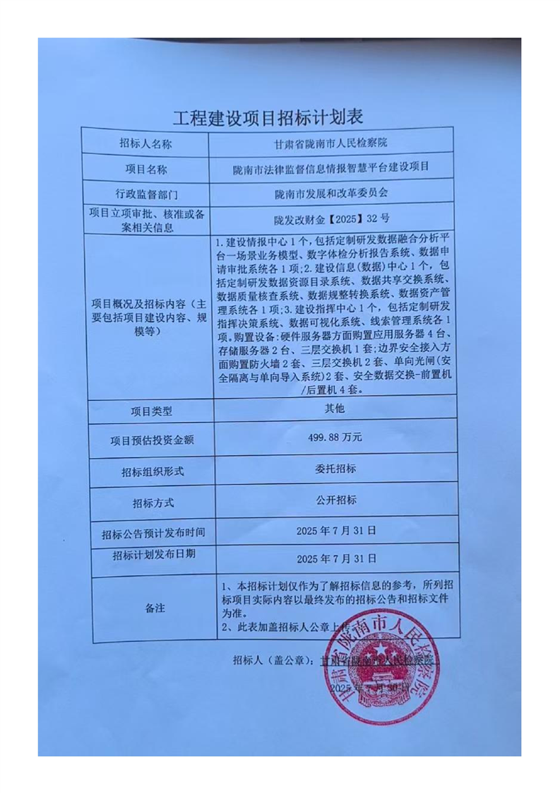 隴南市法律監(jiān)督信息情報智慧平臺建設項目