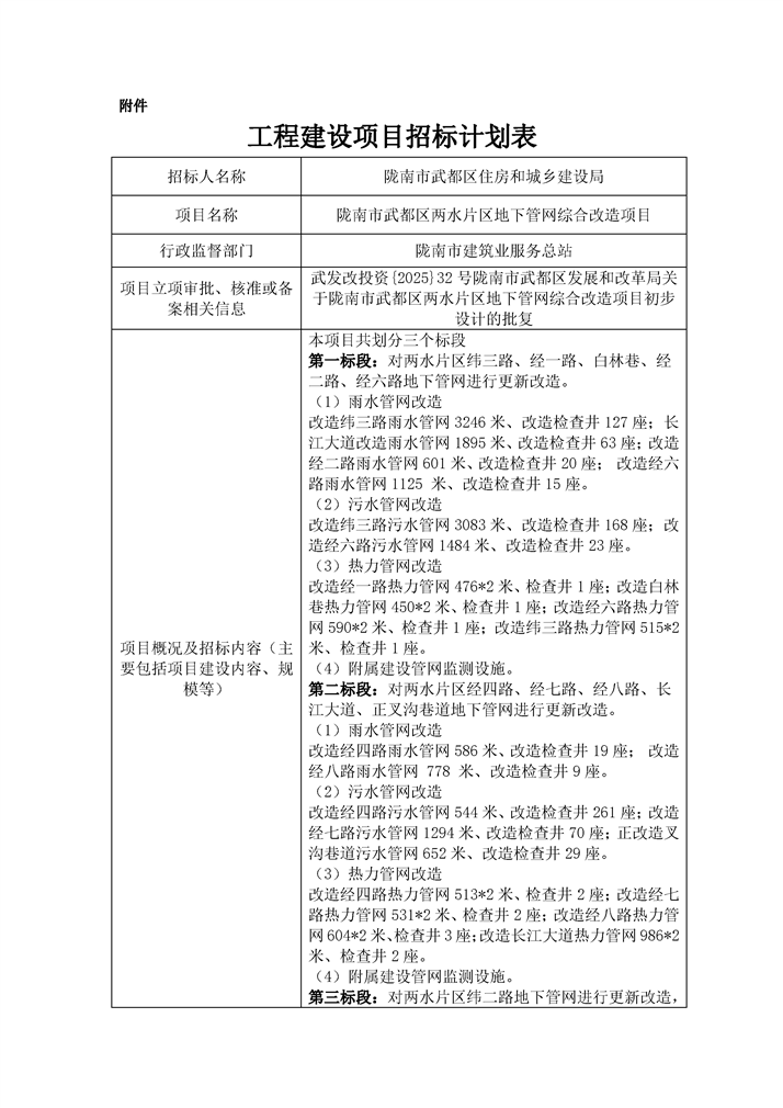 隴南市武都區(qū)兩水片區(qū)地下管網(wǎng)綜合改造項目
