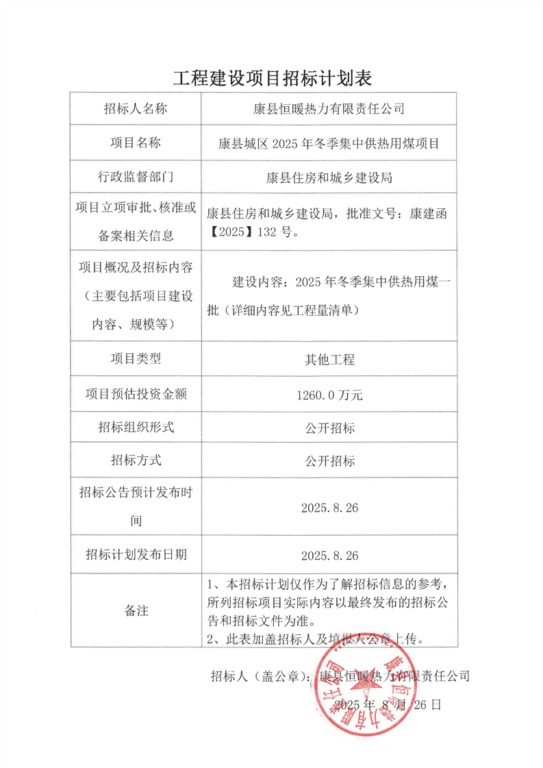 康縣城區(qū)2025年冬季集中供熱用煤項目