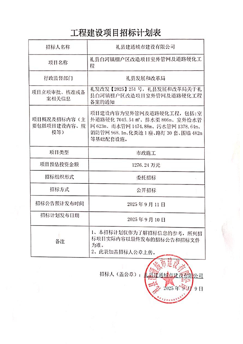 禮縣白河鎮(zhèn)棚戶區(qū)改造項(xiàng)目室外管網(wǎng)及道路硬化工程