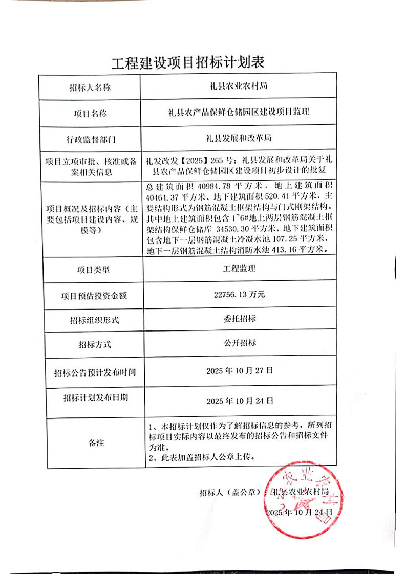 禮縣農(nóng)產(chǎn)品保鮮倉儲園區(qū)建設(shè)項目監(jiān)理