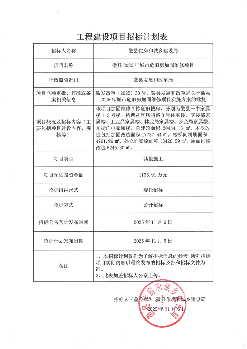 徽縣2025年城市危舊房加固維修項目