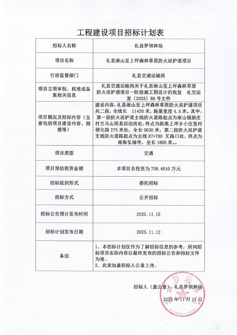 禮縣湫山至上坪森林草原防火巡護(hù)道項(xiàng)目