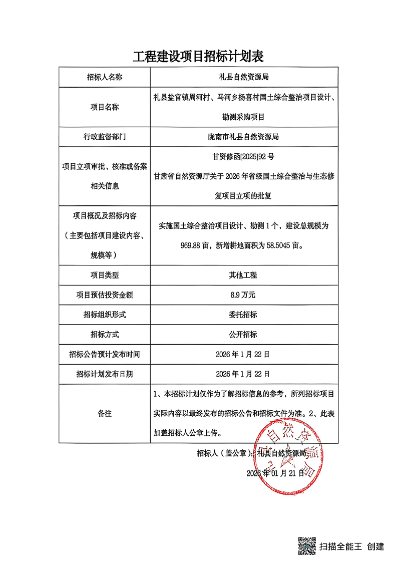 禮縣鹽官鎮(zhèn)周河村、馬河鄉(xiāng)楊喜村國土綜合整治項目設計、勘測采購項目