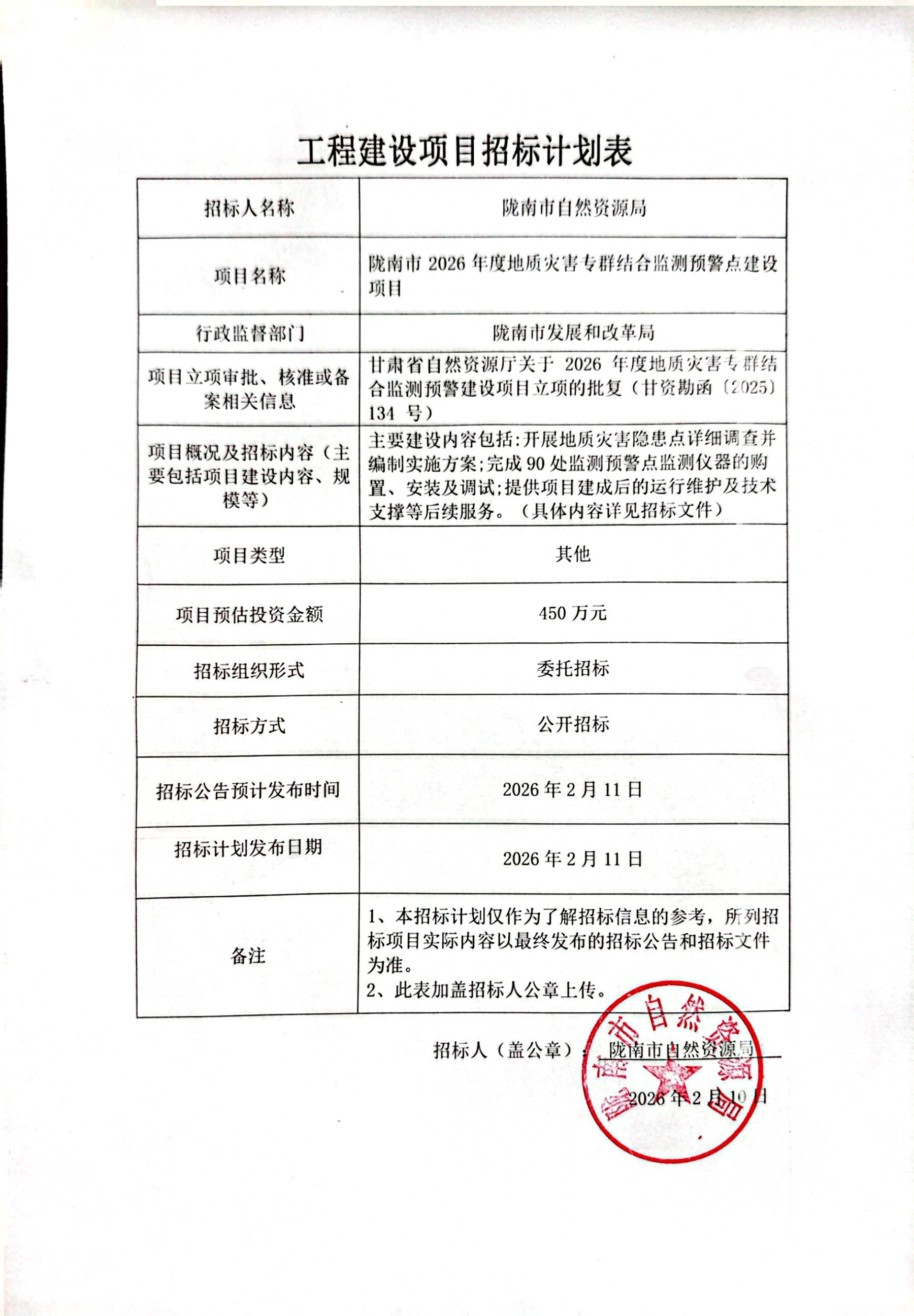 隴南市2026年度地質(zhì)災(zāi)害專群結(jié)合監(jiān)測預(yù)警點(diǎn)建設(shè)項目