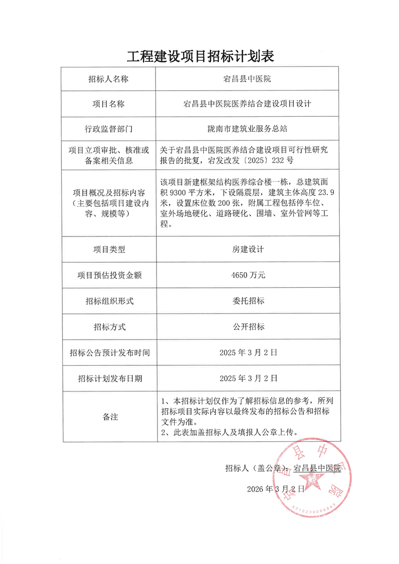 宕昌縣中醫(yī)院醫(yī)養(yǎng)結(jié)合建設(shè)項目設(shè)計