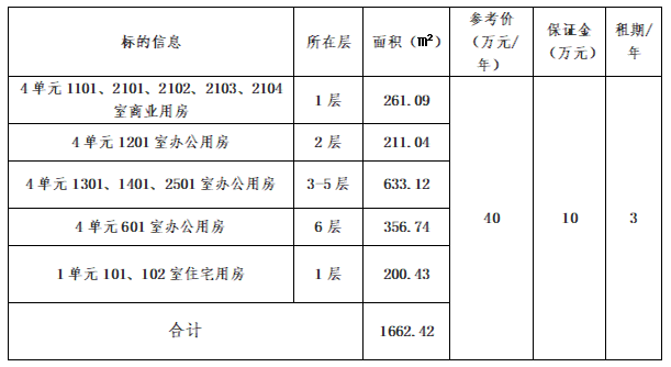 4、本次拍賣按標(biāo)的物現(xiàn)狀拍賣,標(biāo)的詳情及其他事項(xiàng)等詳見《辦公及商業(yè)房地產(chǎn)租賃權(quán)拍賣文件》。