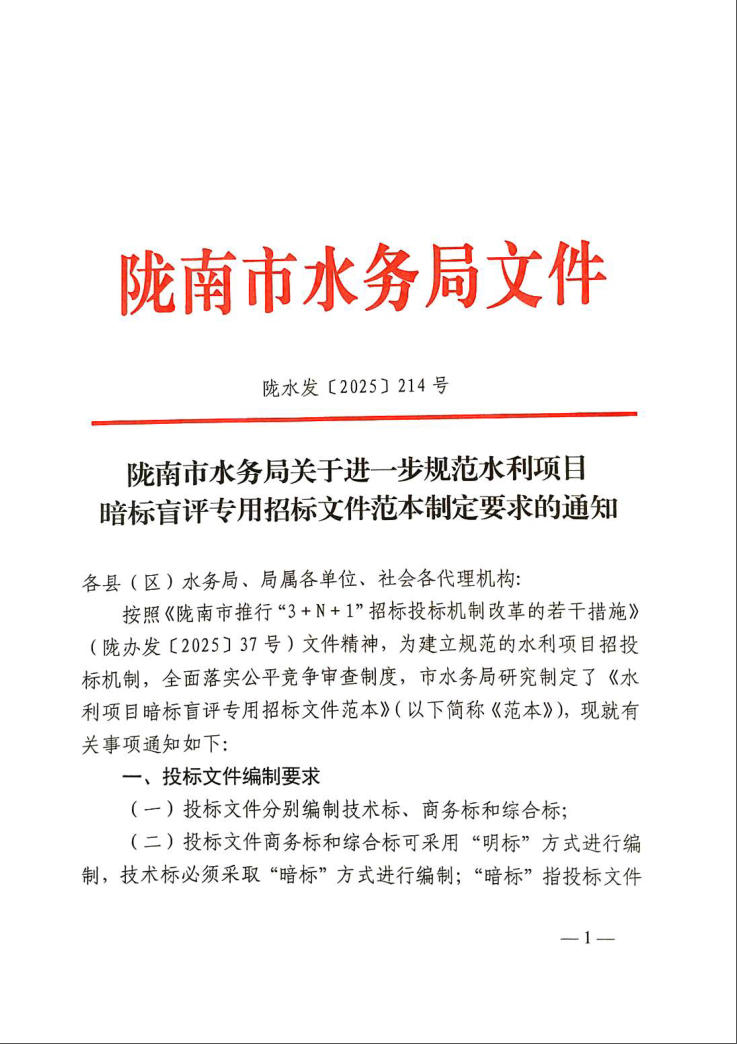 附件:附件:隴南市水利項目盲標(biāo)暗評專用招標(biāo)文件范本(1).pdf 附件:水利類-材料采購模板.docx 附件:水利類-監(jiān)理模板.docx 附件:水利類-設(shè)計模板.docx 附件:水利類-施工模板.docx